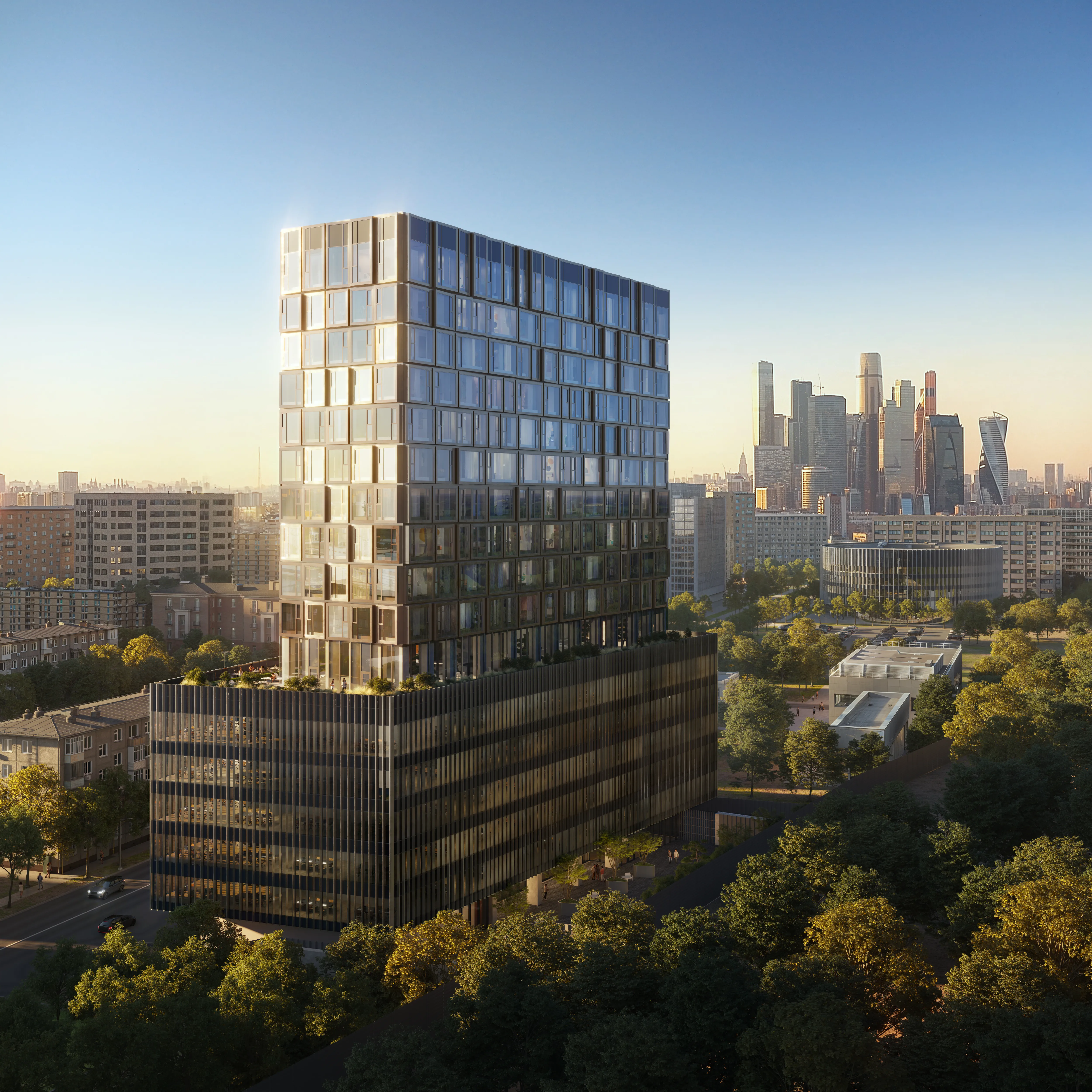 AHEAD отличает яркая авторская архитектура от звездного российского бюро «Цимайло Ляшенко и Партнеры», которая вместе с продуманными планировочными решениями подчеркивает премиальный статус проекта. «Архитектура стала отражением концепции здания: две функции – деловая и жилая – воплотились в двух объемах с отдельными входными группами и разными по динамике фасадными решениями», – рассказал Александр Цимайло том, как складывался облик новой доминанты Кутузовского проспекта.