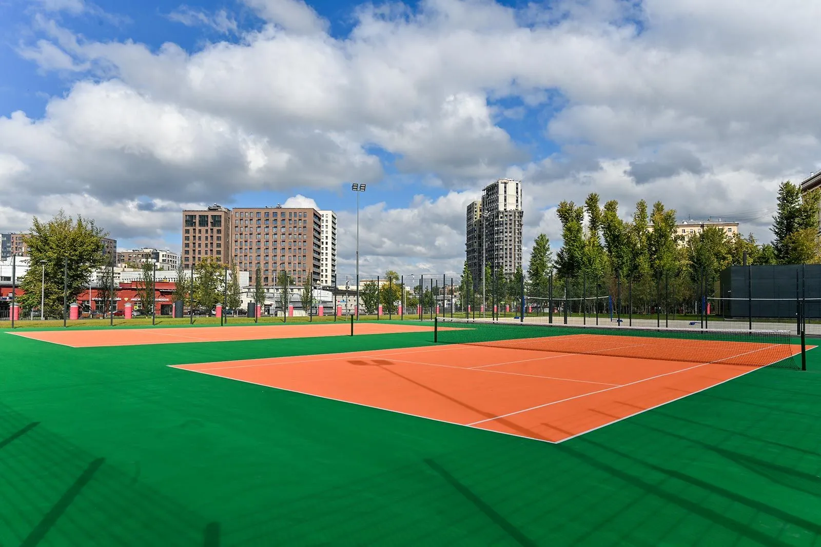 На территории появились новые спортивные площадки с навесами для индивидуальных и групповых занятий, зона с уличными тренажерами и воркаутом, в том числе комплекс «русский ниндзя». Построены площадки для баскетбола, волейбола, тенниса и пляжного волейбола.
