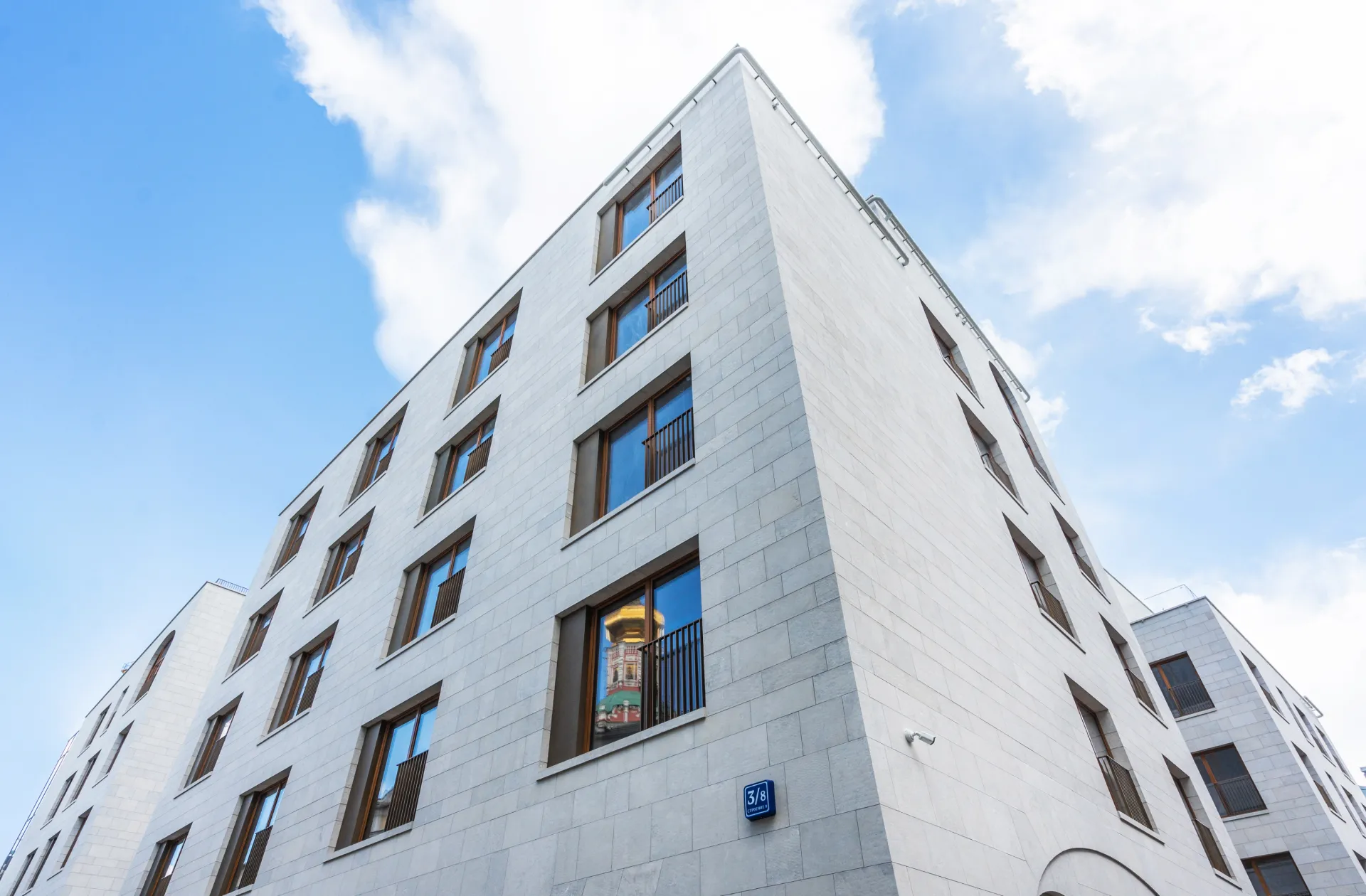 Элегантные здания стали частью камерного архитектурного ансамбля «Ильинки 3/8» от Sminex. Девелопер создал фасады современных клубных особняков из геналдонского доломита и индийского гранита, украсил их барельефами ручной работы. Внутри разместил 56 резиденций с видом на исторический центр Москвы, самыми полными системами комфорта и сервисом пятизвёздочного отеля.