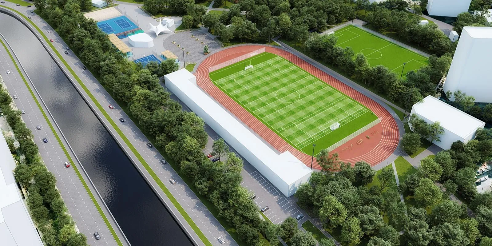 - Вместо старого футбольного поля появится многофункциональная игровая арена с искусственным покрытием и системой подогрева, подходящая для футбола и регби.