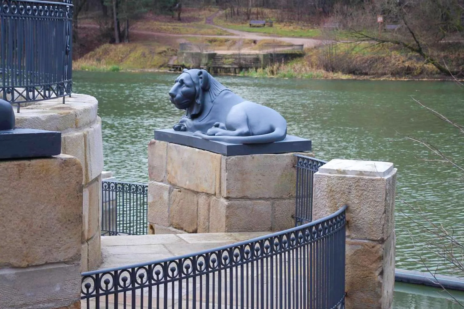 Львиная пристань – одна из главных достопримечательностей усадебного ансамбля. Ее построили в 1811 году на месте более ранней пристани XVIII века, а в 1830-х годах перестроили, предположительно по проекту архитектора Доменико Жилярди. Со временем сооружение пришло в упадок: к середине XX века оно фактически превратилось в руины, а в 2000-х годах было почти полностью утрачено.